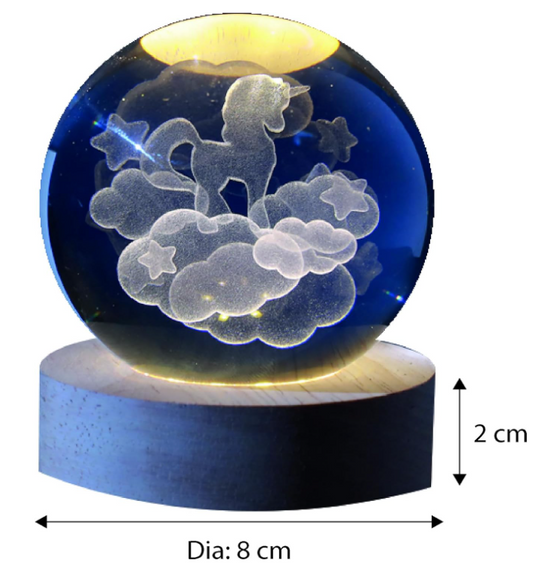 Sfera di vetro 3D con Led RGB Multicolore cavo USB tema UNICORN