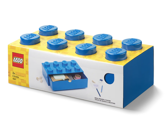 Cassetto da scrivania impilabile con 8 manopole, Blu, grande