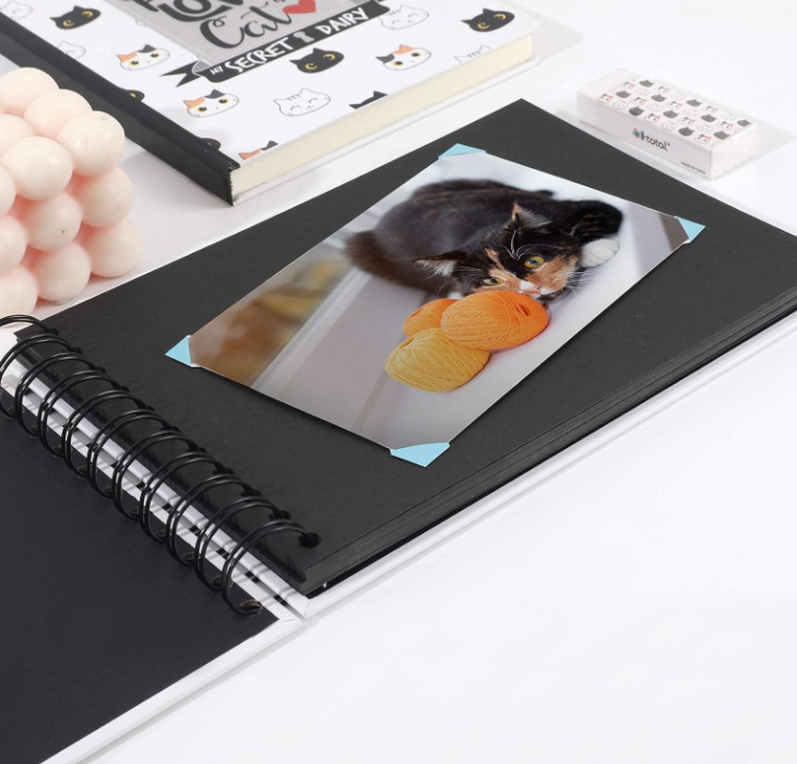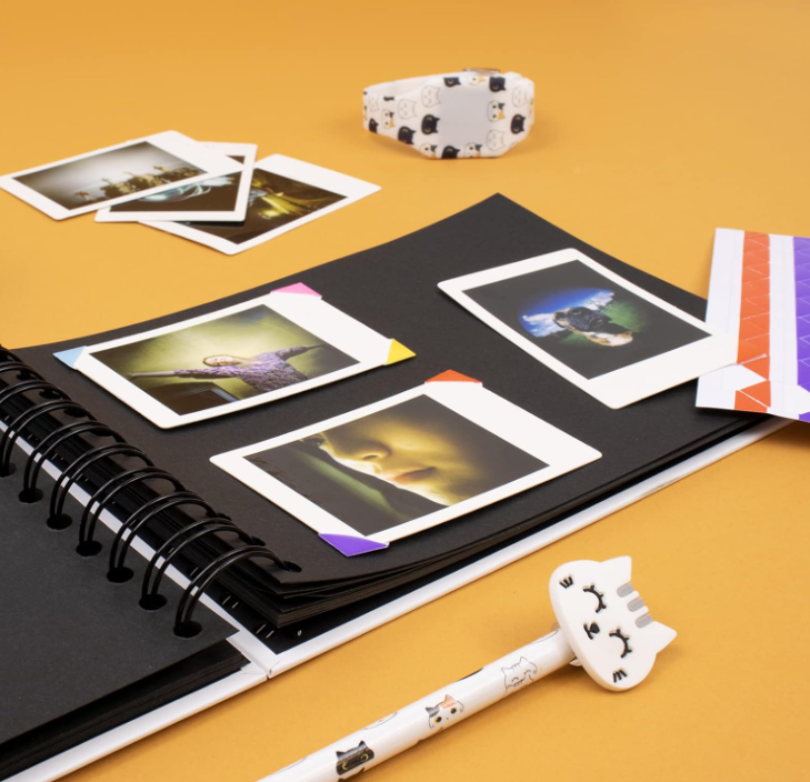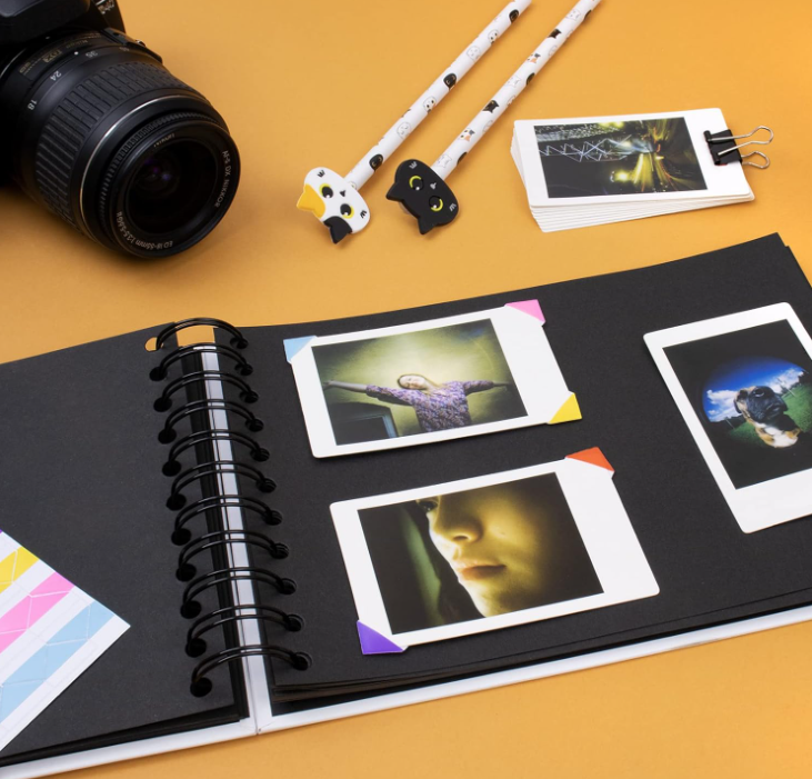 Insieme all'album portafoto avrai anche delle strisce adesive da apporre sulle pagine per poter inserire poi le foto. Non avrete più fogli volanti o foto sparse in giro per la casa.