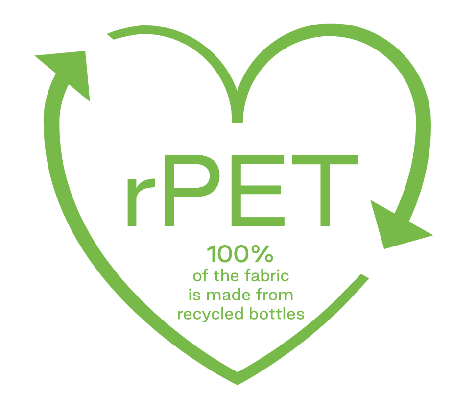 Il 100% del tessuto esterno è realizzato con 18 bottiglie di plastica riciclate (bottiglie rPET).