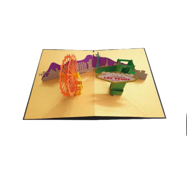 Il Biglietto Augurale Origami Las Vegas fonde l’eleganza dell’origami con l’iconica atmosfera di Las Vegas, perfetto per celebrare occasioni speciali con un tocco di glamour e originalità. Questo biglietto artigianale valorizza ogni messaggio di auguri, offrendo un design unico che evoca divertimento e vivacità.