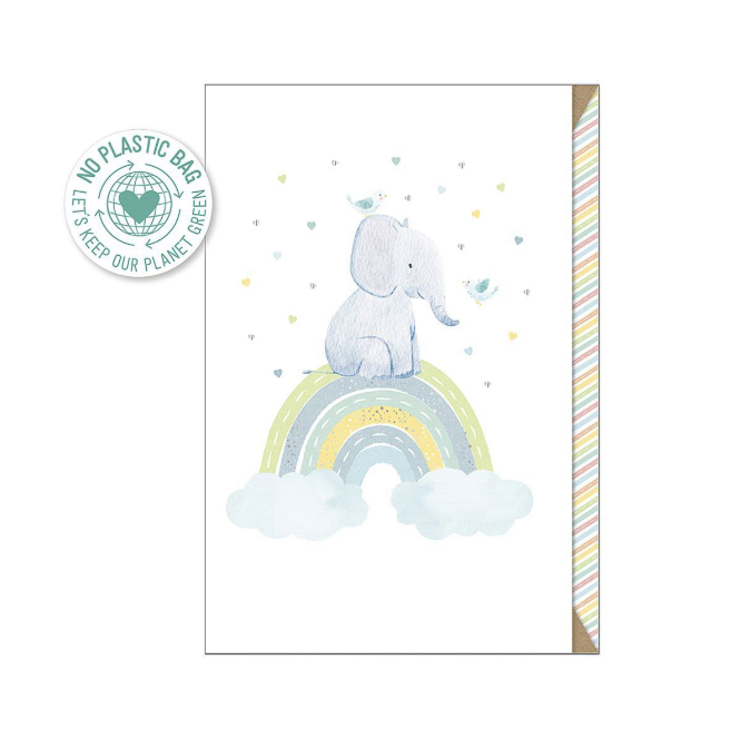 Biglietto doppio + busta augurale Elefantino Nascita Celeste