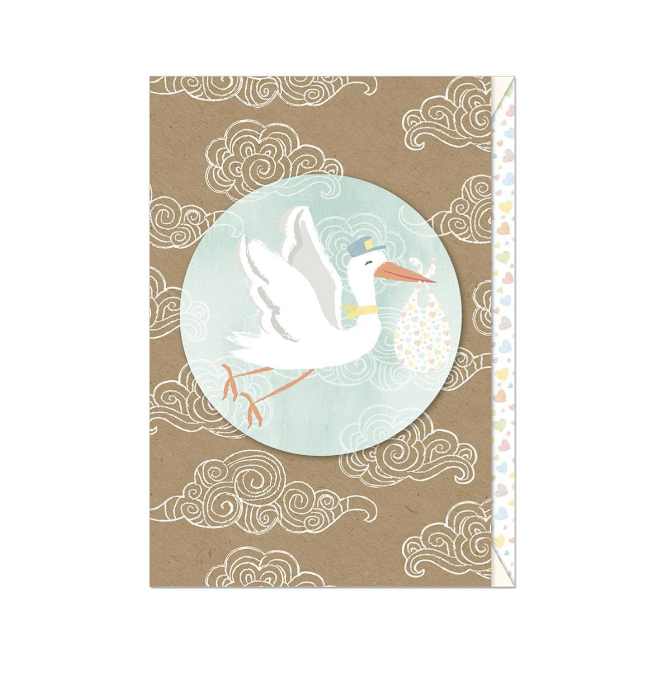 Questo biglietto doppio e busta augurale Nascita Cicogna è perfetto per celebrare l'arrivo di un nuovo bambino. Realizzato con materiali di alta qualità, questo set ti permette di inviare i tuoi auguri in modo elegante e personalizzato. Con i suoi toni neutri e il disegno della cicogna, è adatto per qualsiasi genere del neonato.