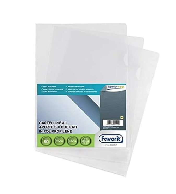 Buste ad "L" trasparenti, lucide e pesanti in confezione da 25 pezzi Favorit