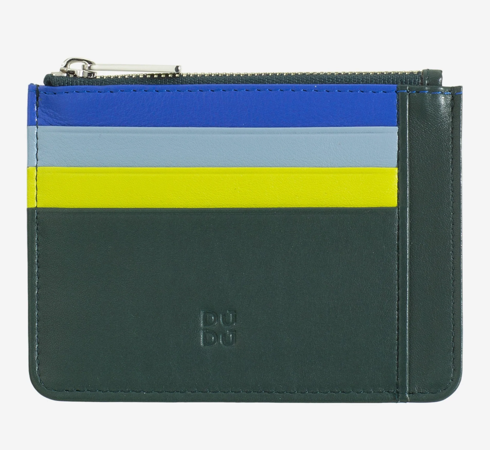 Bustina porta carte di credito in morbida pelle Nappa di vitello multicolore con zip YKK. Un accessorio che garantisce massima praticità: piatto e compatto, è perfetto per portare sempre con sé tutte le carte di cui hai bisogno.