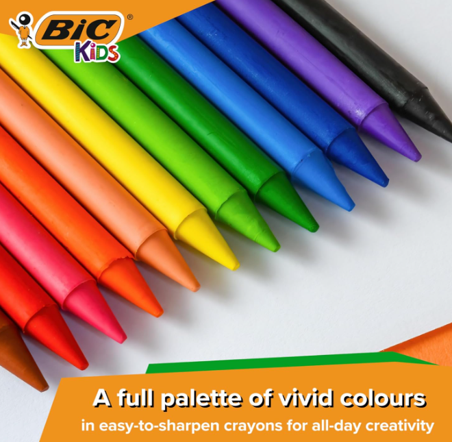 24 colori intensi, tra cui l'oro e l'argento, per i capolavori dei tuoi bambini; I pastelli BIC Kids sono facili da temperare e più resistenti dei comuni pastelli per colorare.