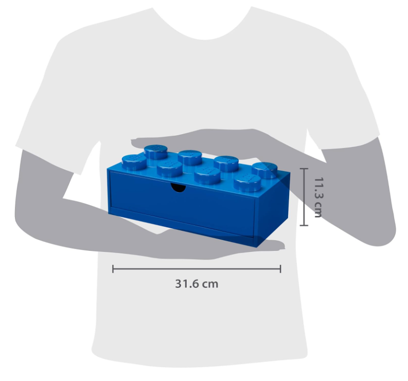 Questo cassetto a forma di mattoncino LEGO® rettangolare 2x4 è un pratico accessorio da scrivania o da porre su una mensola per conservare in modo pratico e facilmente accessibile oggetti di vario tipo. È perfetto da utilizzare in ufficio, nelle camerette dei bambini, in bagno e in qualsiasi ambiente da tenere ordinato e ben organizzato. Grazie agli 8 bottoncini oversize sulla superficie superiore di ogni contenitore, è possibile creare un sistema personalizzato e colorato da adattare alle esigenze del momento.