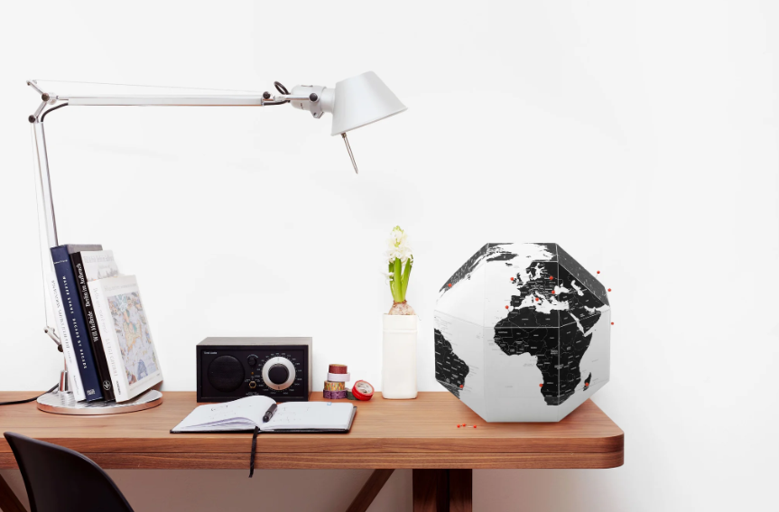 Dear World è un globo che ti fa tracciare la tua personale esperienza di viaggio. Ti invita a segnare i luoghi che hai visitato e quelli che sono nella tua lista dei desideri! A prima vista questo globo sembra bidimensionale, come un atlante; bastano pochi secondi per trasformarlo in un oggetto tridimensionale. Il globo è realizzato con una speciale carta di alta qualità di Fedrigoni e la grafica esalta la preziosità della carta, la sua qualità tattile e la sua consistenza.