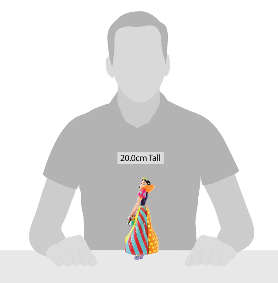 "Romero Britto reinventa Biancaneve nel suo stile caratteristico: colori e motivi vivaci. Ogni statuetta di Disney by Britto, decorata in stile pop art dall'artista internazionale Romero Britto, è realizzata in resina dipinta a mano con finitura laccata lucida. Confezionato in una scatola regalo. Queste figure non sono giocattoli per bambini. Destinato solo agli adulti".