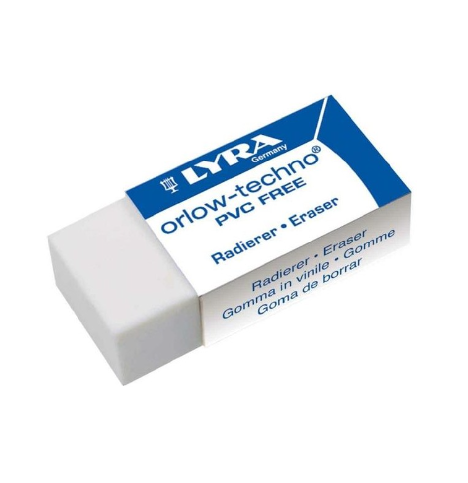 Gomma bianca in vinile, adatta a tutte le superfici, per tratti in matita. Senza ftalati e senza lattice.