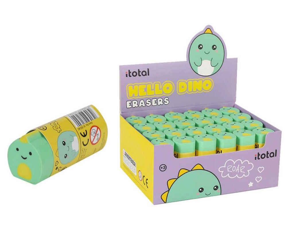 La nostra gomma a forma di DINOSAURO I-TOTAL® è l'accessorio perfetto per i bambini che amano imparare giocando! Grazie alla sua forma divertente e colorata, rende l'esperienza di cancellazione un'attività divertente ed educativa. Inoltre, la sua formula di gomma garantisce una cancellazione completa e precisa al 100%.