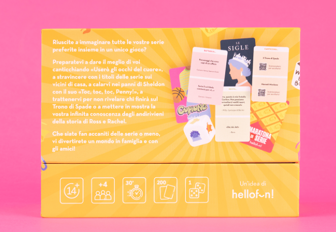 Riuscite a immaginare tutte le vostre serie preferite insieme in un unico gioco? Preparatevi a dare il meglio di voi canticchiando “Userò gli occhi del cuore”, a stravincere con i titoli delle serie sui vicini di casa, a calarvi nei panni di Sheldon con il suo “Toc, toc, toc, Penny!” o a trattenervi per non rivelare chi finirà sul Trono di Spade. Che siate fan accaniti delle serie o meno, vi divertirete un mondo in famiglia e con gli amici!