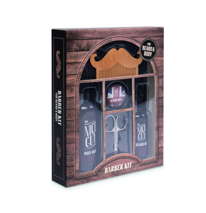 Scatena il tuo lato hipster con il set regalo barba `Mr. Nice Guy`! Contiene bagnoschiuma, olio per barba, pasta per barba e pettine in legno, tutti con una deliziosa fragranza di sandalo. Rendi la tua barba perfetta e il tuo stile irresistibile con questo set senza precedenti.