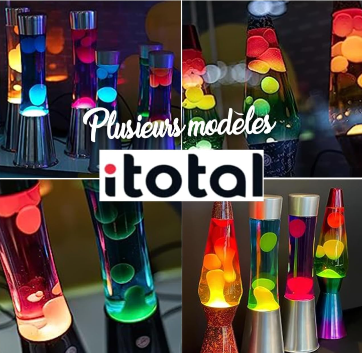 La lampada lava retrò i-Total con il suo design originale in vetro sorprende con un set colorato di cera e liquido e crea un'atmosfera di assoluto benessere nel tuo salotto, è alla moda nella stanza dei bambini.
