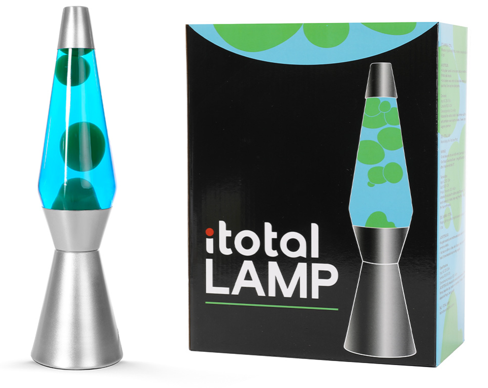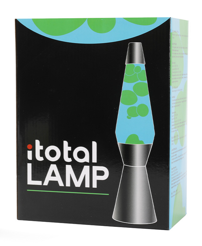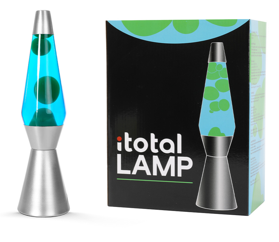 La lampada lava retrò i-Total con il suo design originale in vetro sorprende con un set colorato di cera e liquido e crea un'atmosfera di assoluto benessere nel tuo salotto, è alla moda nella stanza dei bambini.
