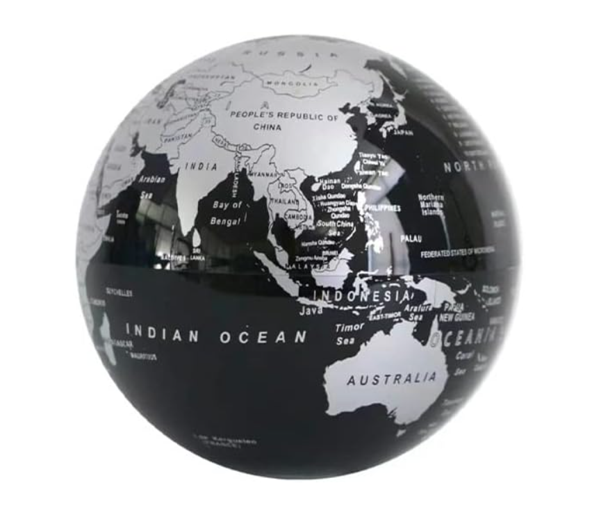 Mappamondo rotante nero e argento
