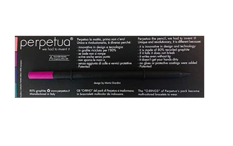 Perpetua è PERPETUA: scrive anche senza punta o se divisa in due. Scrive per 1120 km, 22 volte più a lungo di una matita tradizionale.