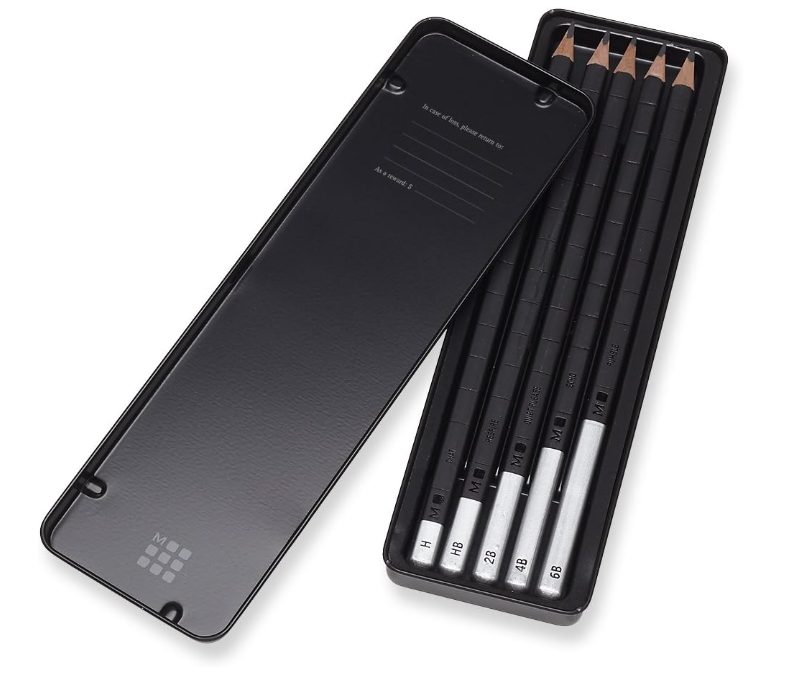 Ideale per gli artisti e gli appassionati di disegno, questo astuccio in metallo contiene un set di 5 matite da disegno di alta qualità della famosa marca Moleskine®. Queste matite offrono una vasta gamma di tonalità e una precisione eccezionale, garantendo risultati sorprendenti su qualsiasi tipo di carta. Aggiungi il tocco finale perfetto ai tuoi disegni con questo astuccio di matite da disegno Moleskine®. Forma incredibilmente squadrata per un'impugnatura naturalmente stimolante. Legno naturale di cedro certificato FSC, Mina di 3 mm. Comode nella scrittura.