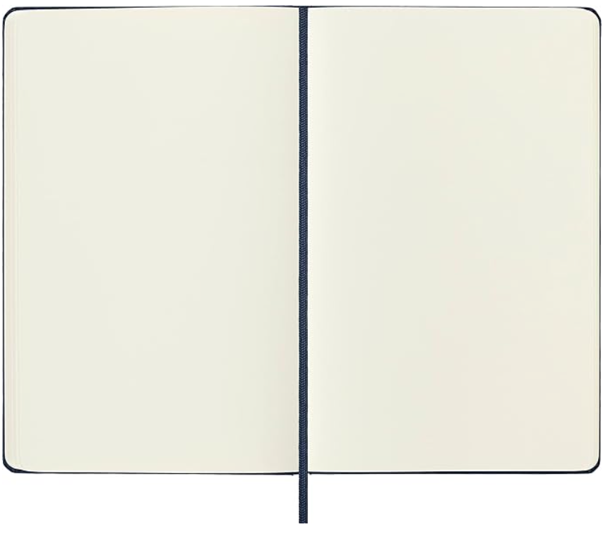 La confezione contiene un taccuino con pagine bianche e copertina rigida, disponibile nel formato Large 13 x 21 cm da 240 pagine e nel colore Blu Zaffiro.