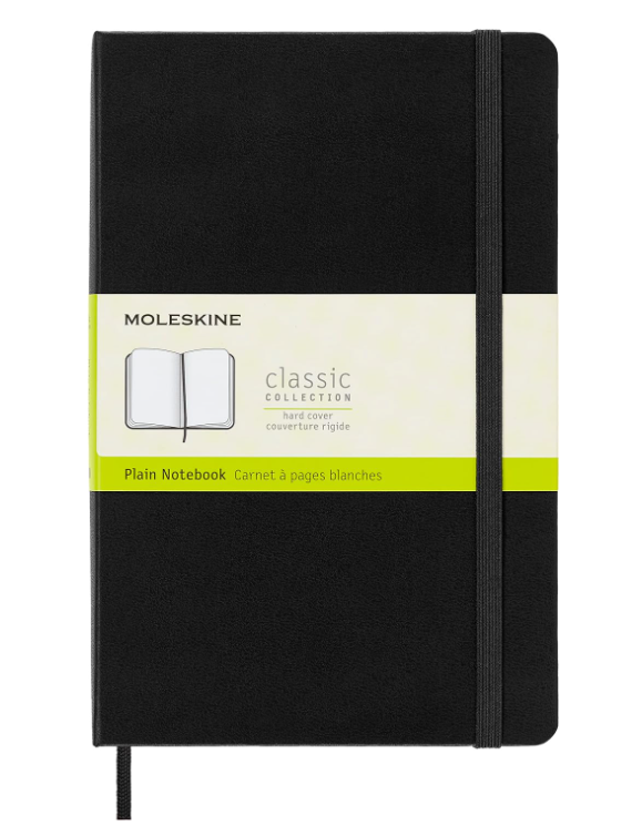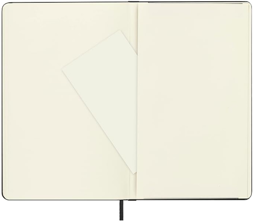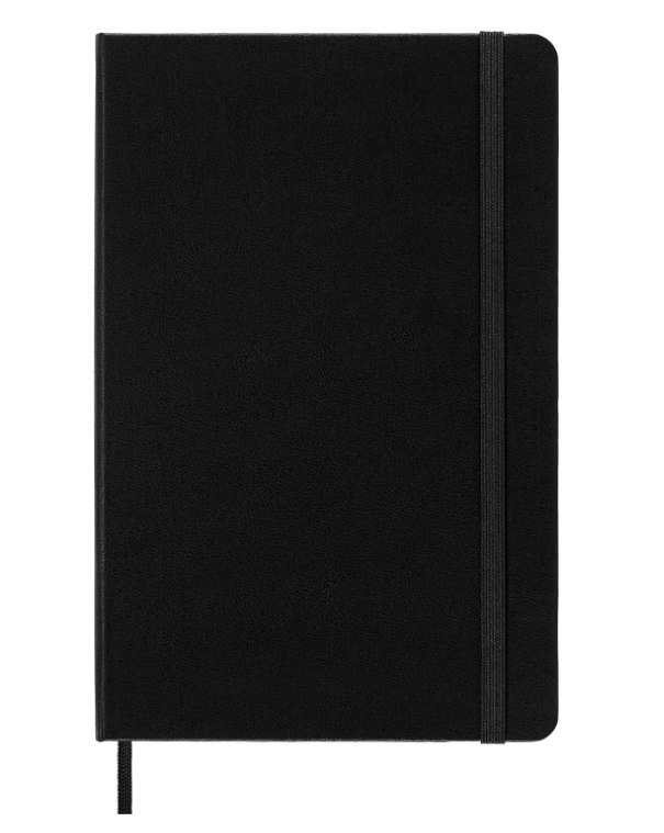 La confezione contiene un taccuino con pagine bianche e copertina rigida, disponibile nel formato Large 13 x 21 cm da 240 pagine e nel colore nero.