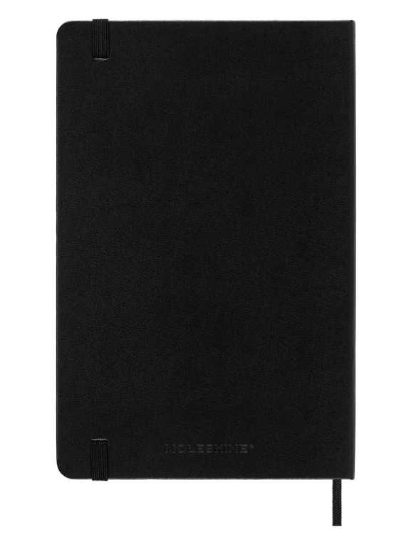 Sul B-SIDE della fascetta riutilizzabile sono stampati strumenti aggiuntivi; all'interno dei nostri prodotti è stampata tutta la storia di Moleskine; apertura totale del notebook a 180°.