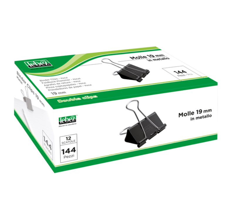 Molle Fermacarte Double Clip da 19 mm confezione da 12 pezzi