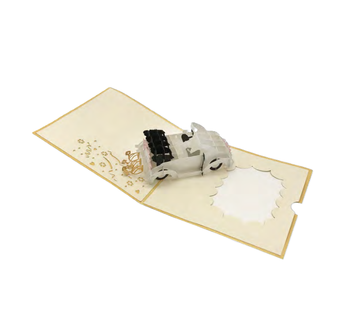 Aggiungi un tocco di creatività alle tue congratulazioni di matrimonio con il Biglietto Augurale Origami Matrimonio Macchina. Questo biglietto pieghevole unico in stile origami si apre per rivelare una bellissima macchina da sposa che simboleggia l'avvio di una nuova vita insieme. Un augurio speciale per la coppia speciale.