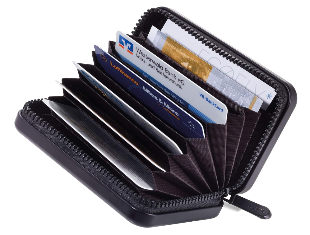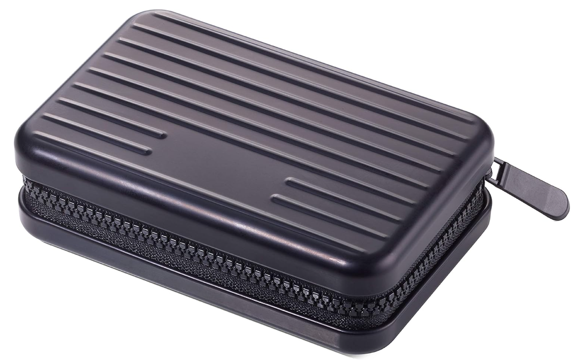 I 9 scomparti offrono spazio per circa 20 carte, denaro e ricevute. La custodia per carte di credito si presenta nel design di una valigetta rigida. Ideali da regalare ai viaggiatori.