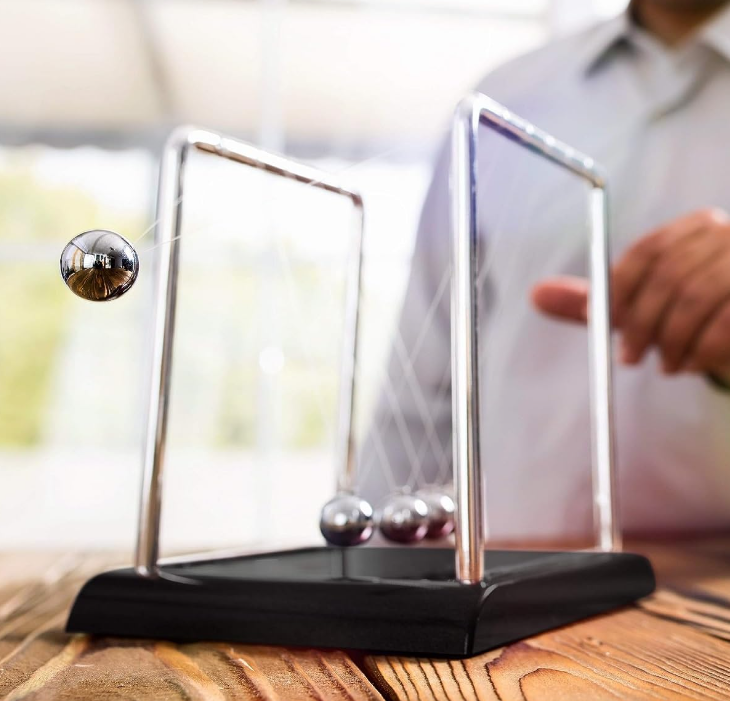 Scopri il meraviglioso mondo della fisica con il pendolo di Newton in movimento perpetuo I-TOTAL®. Con il suo movimento costante, questo pendolo rappresenta il principio di conservazione dell'energia e può essere utilizzato per illustrare i concetti di forza, accelerazione e gravità. Un'aggiunta perfetta per gli studenti e gli appassionati di scienza.