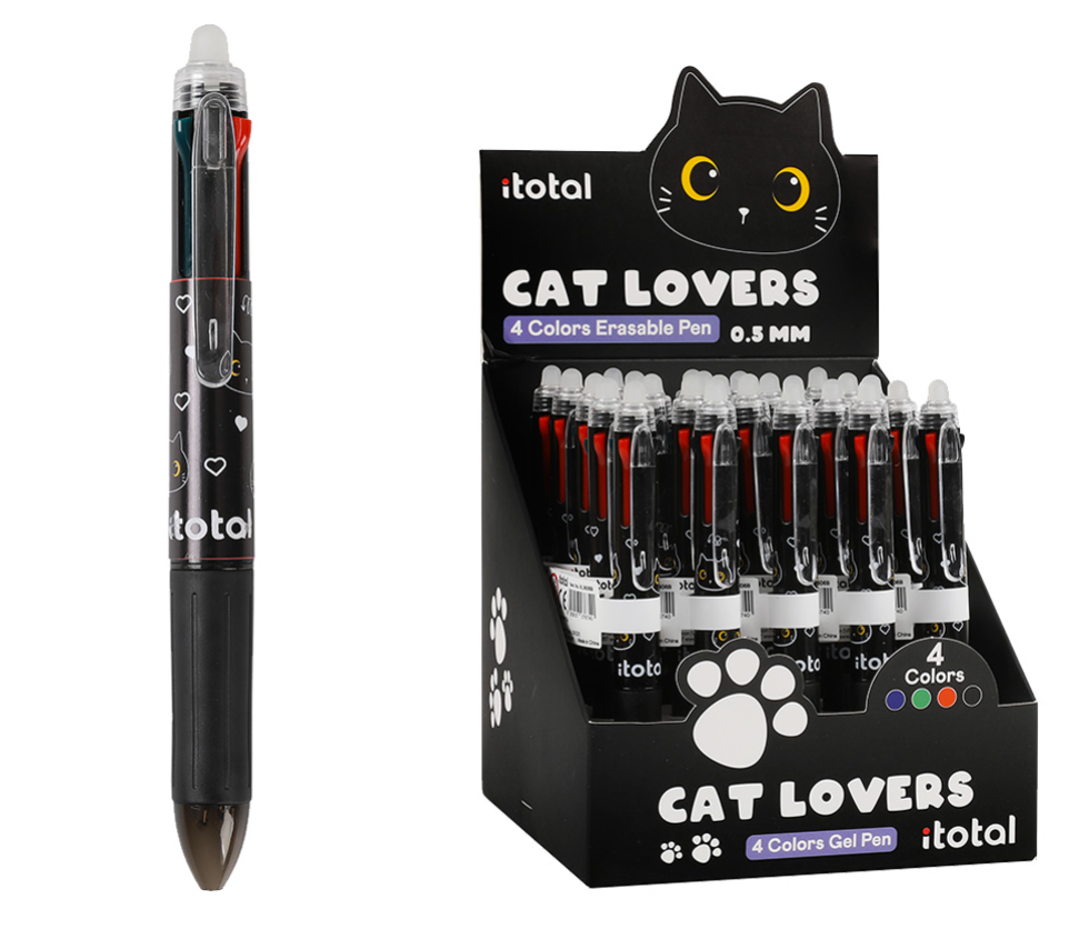 I-TOTAL® - Penna Cancellabile Ricaricabile 4 COLORI è una penna cancellabile che contiene quattro colori: nero, blu, rosso e verde. Non preoccuparti più di sbavature o errori, grazie alla sua capacità di cancellare e modificare i tuoi appunti o disegni. Ricaricabile per una lunga durata.
