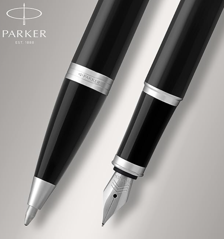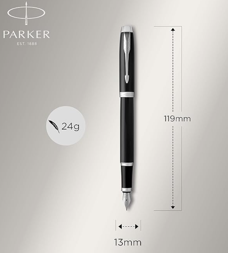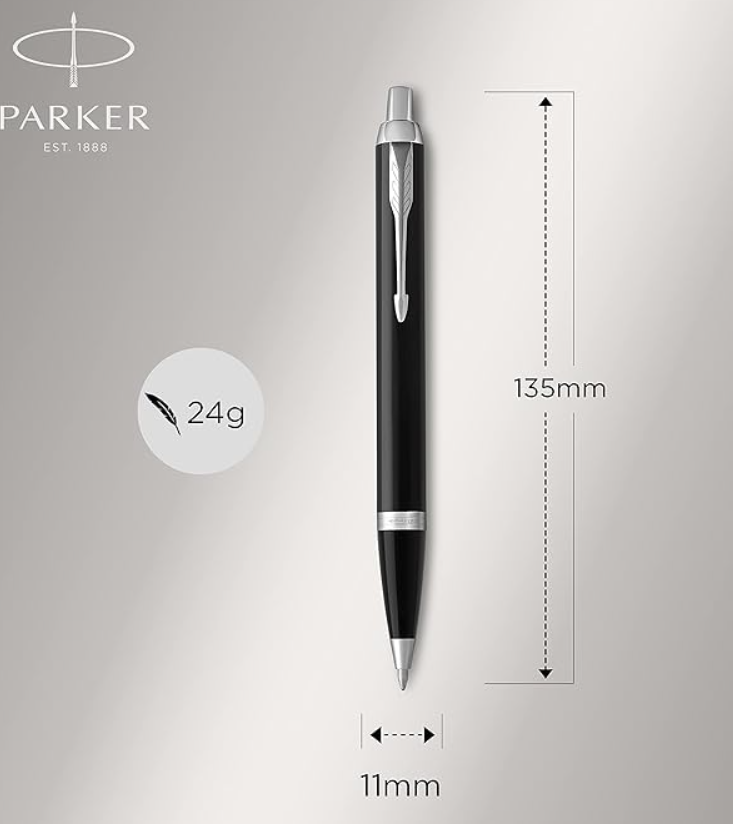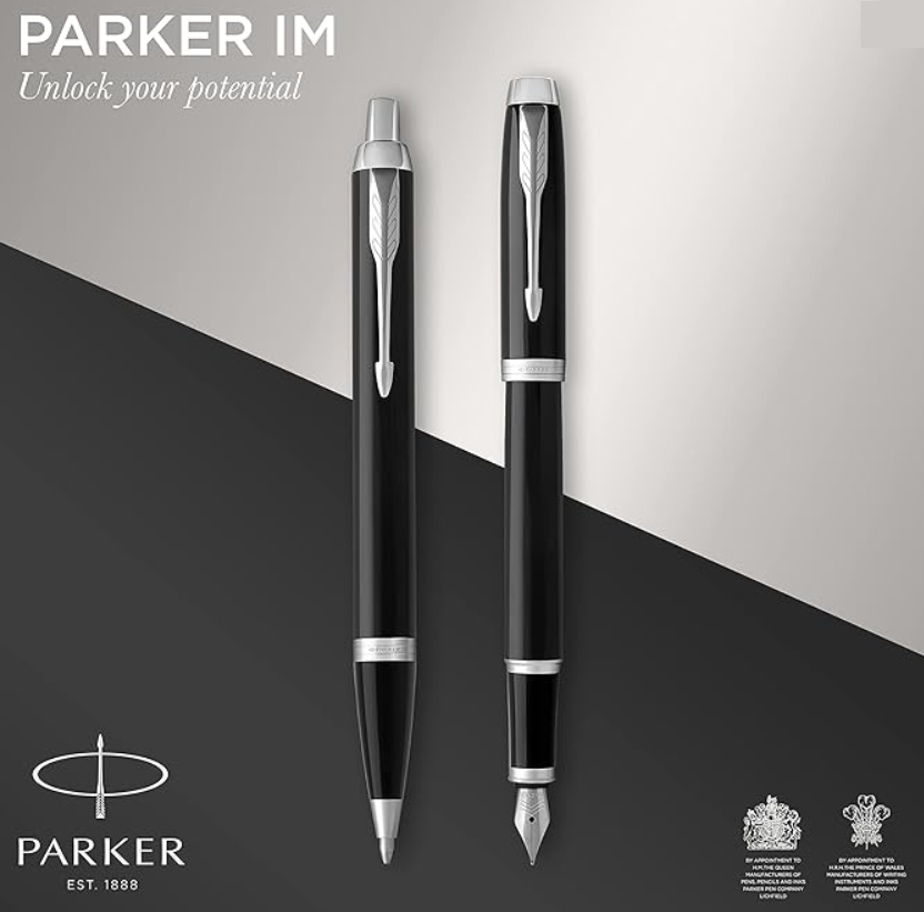 Sapientemente realizzate con un corpo laccato nero lucido, sono caratterizzate da finiture cromate ultra brillanti e dalla clip a freccia tipica del marchio Parker.