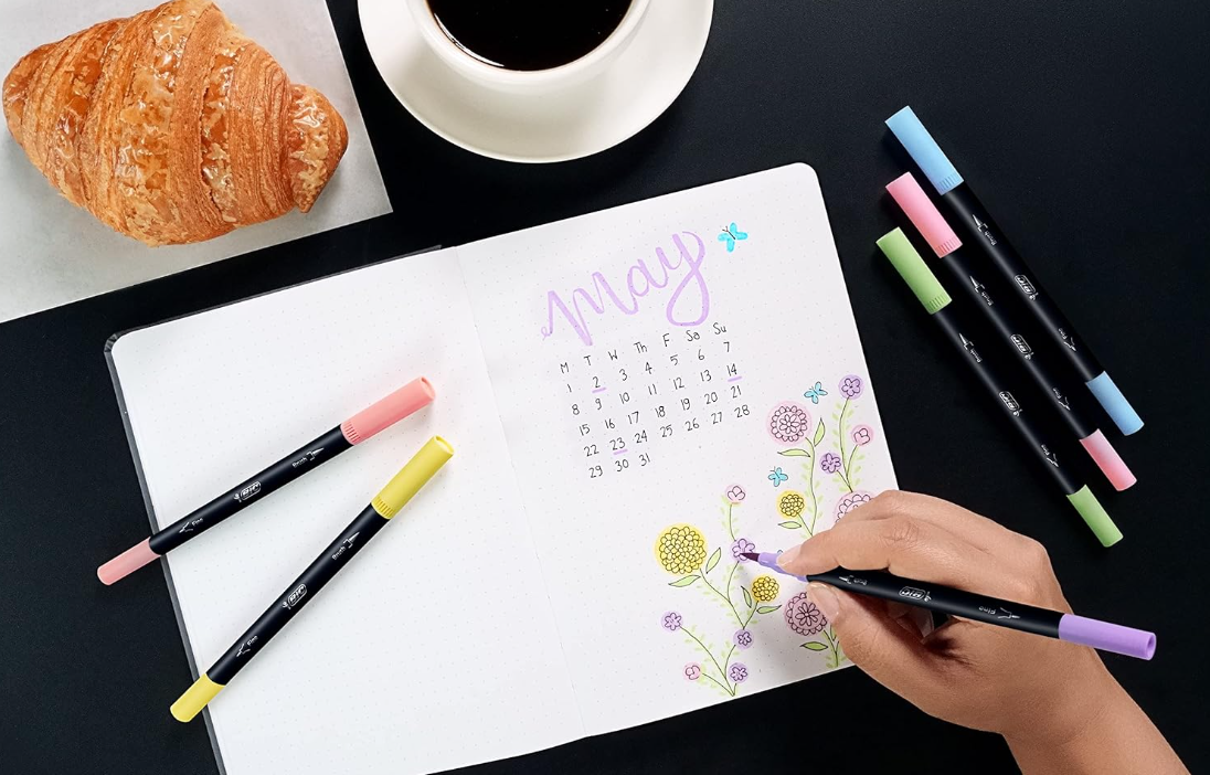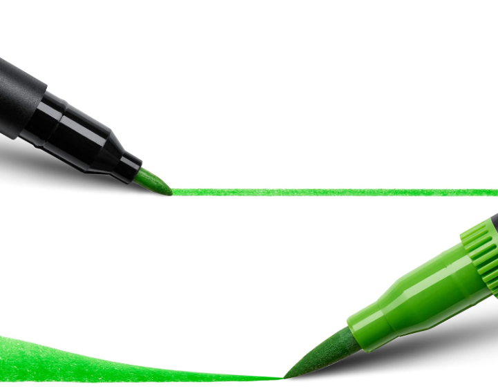 - 2 in 1: punta a pennello flessibile+ punta fine in un unico pennarello.