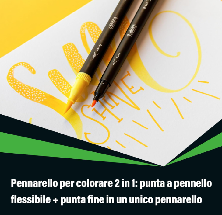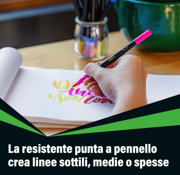 - 2 in 1: punta a pennello flessibile+ punta fine in un unico pennarello.