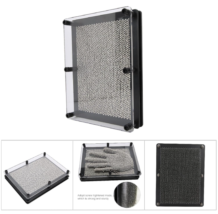Il PinArt 3D è un gadget divertente e originale che consente di creare forme e figure tridimensionali attraverso l'utilizzo di chiodini di metallo di diversi colori.