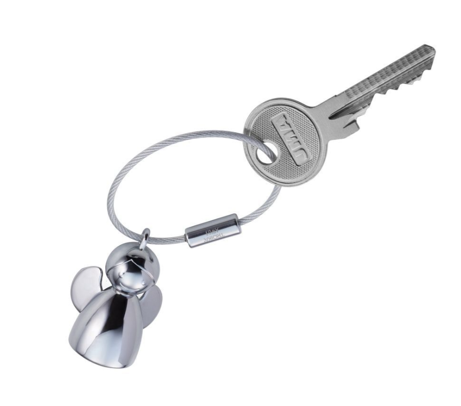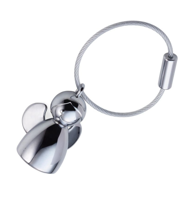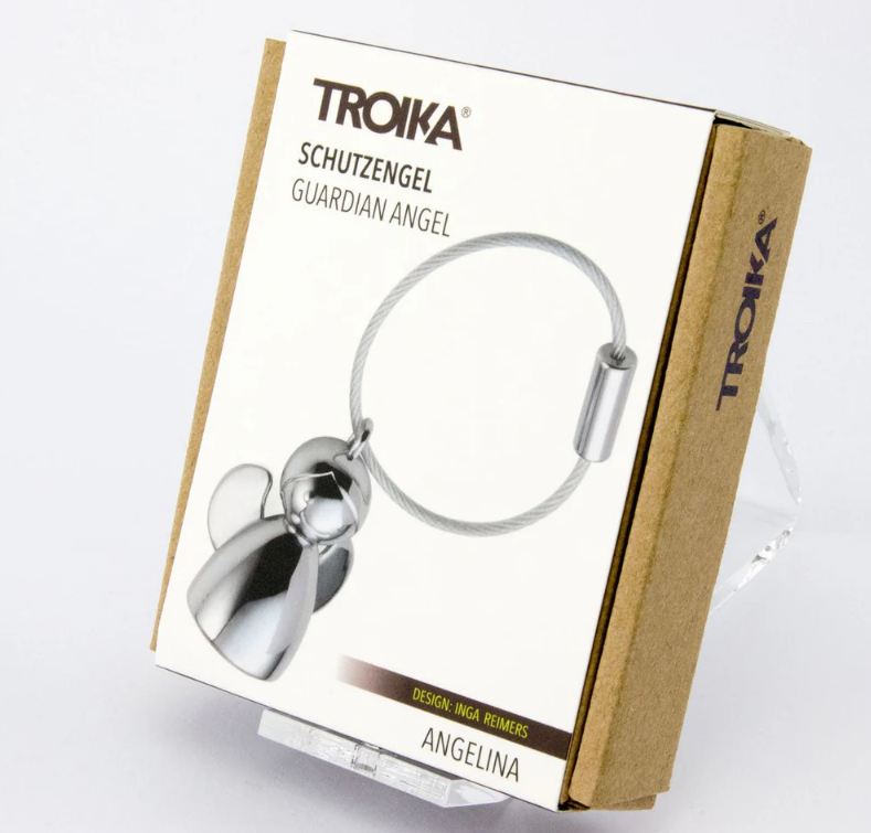 Il portachiavi Angelina di Troika è caratterizzato da un ciondolo in metallo fuso Shine Silver Chromed raffigurante un angelo sorridente in una forma semplice e moderna. Il ciondolo Angel è su un portachiavi adatto alle unghie che consente di aggiungere e rimuovere facilmente le chiavi senza ferirsi le unghie.