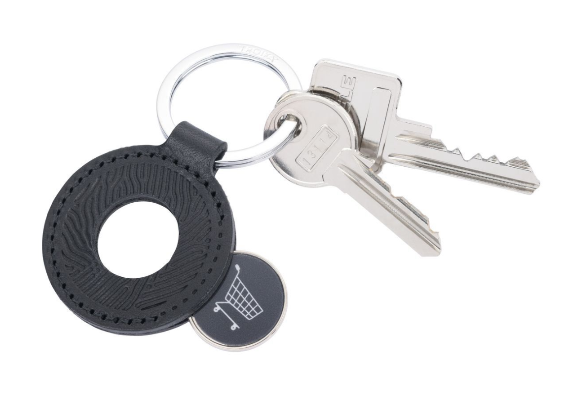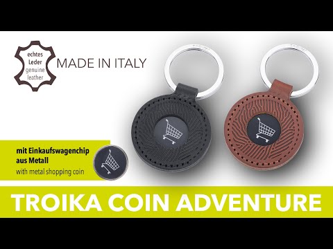 TROIKA ORIGINAL Portachiavi in vera pelle italiana di alta qualità con chip per carrello della spesa in metallo. Pelle di alta qualità - made in Italy - fatto a mano. Molto pratico per avere il chip della spesa sempre a portata di mano, senza doverlo cercare - sempre a portata di mano - spingendo il chip verso l'esterno.