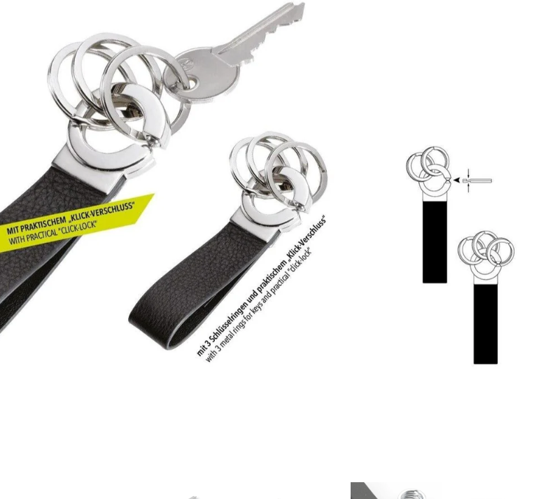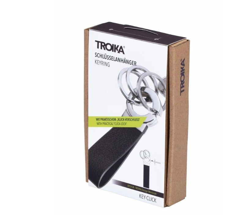 I portachiavi Troika Key-Click Valet sono dotati di un robusto cinturino in pelle e di un robusto sistema "key click" che consente di rimuovere e aggiungere rapidamente gli anelli.