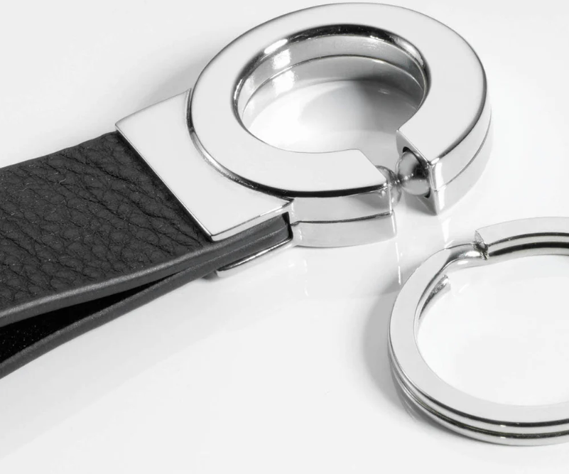 Questo portachiavi progettato e realizzato in Germania utilizza due cuscinetti a sfera per tenere i portachiavi in posizione, ma si apre e si chiude con un semplice clic. Perfetto se hai bisogno di condividere le chiavi o di rimuoverle frequentemente.