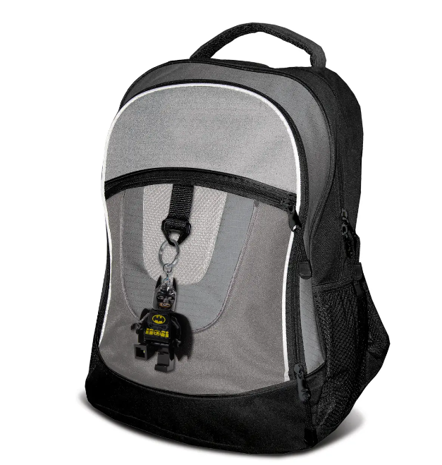 - Torcia portachiavi di Batman™: portachiavi con grande minifigure di Batman™ LEGO® snodabile con 2 brillanti luci a LED nei piedi, fissata a un resistente anello con catena