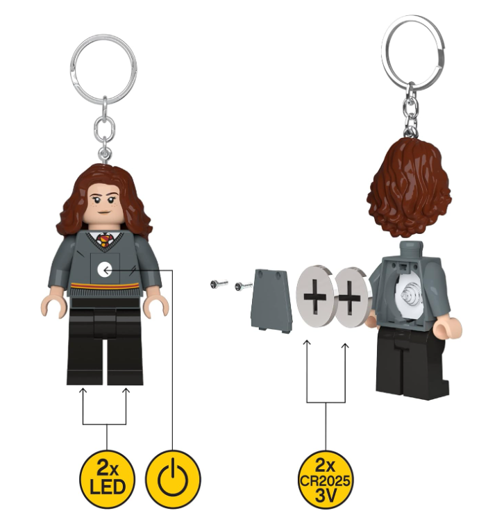 Questo portachiavi LED di LEGO® è perfetto per i fan di Harry Potter e della magia. Grazie alla sua funzione luminosa, potrai trovare le tue chiavi anche al buio. Inoltre, con la sua forma di Hermione Granger, potrai portare sempre con te il tuo personaggio preferito.