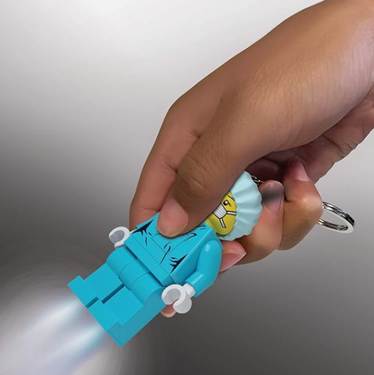 - Torcia portachiavi di Medical Chirurgo: portachiavi con grande minifigure di Medical Chirurgo LEGO® snodabile con 2 brillanti luci a LED nei piedi, fissata a un resistente anello con catena