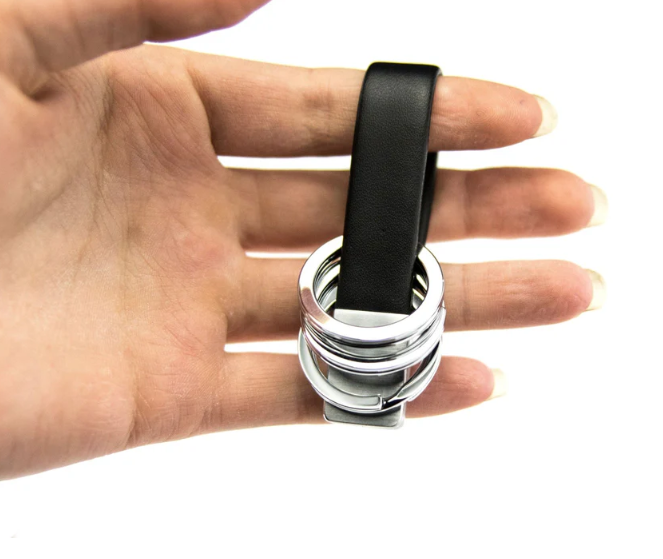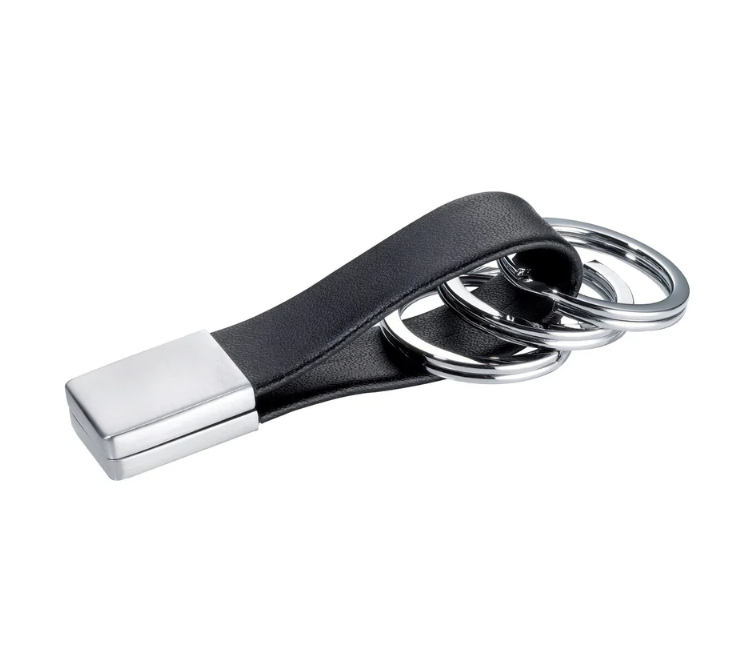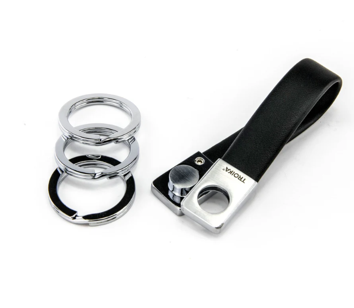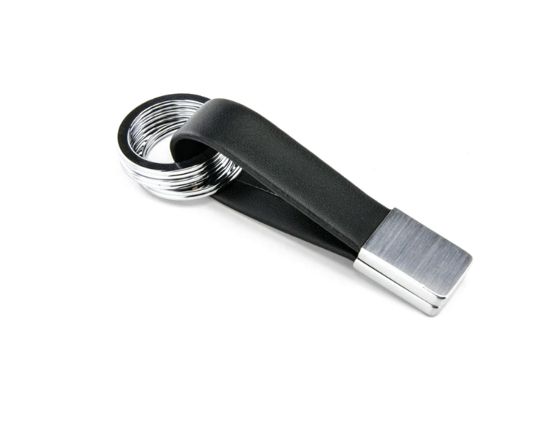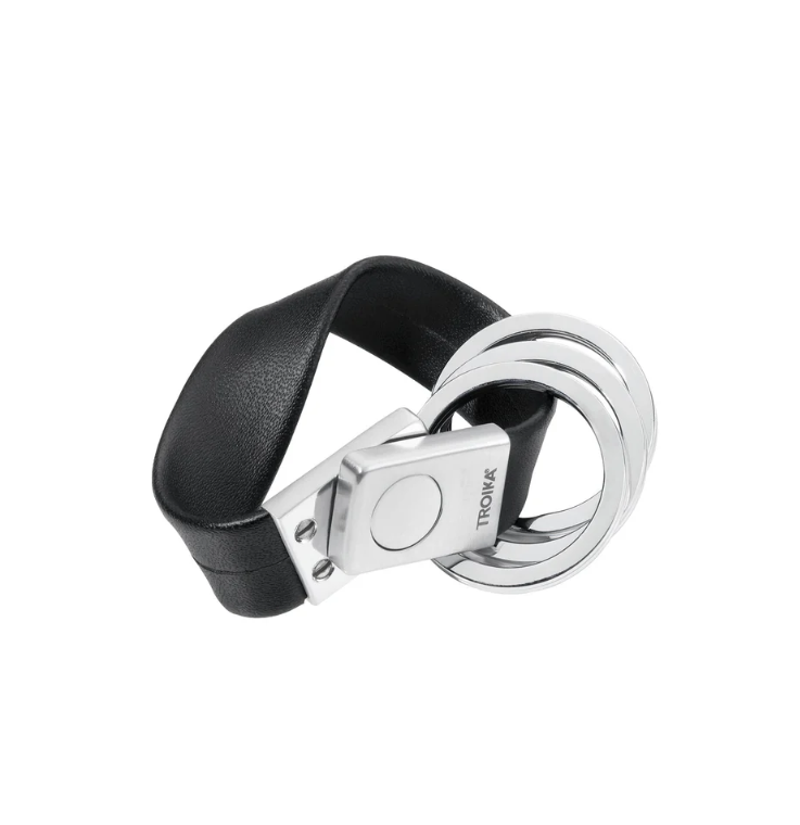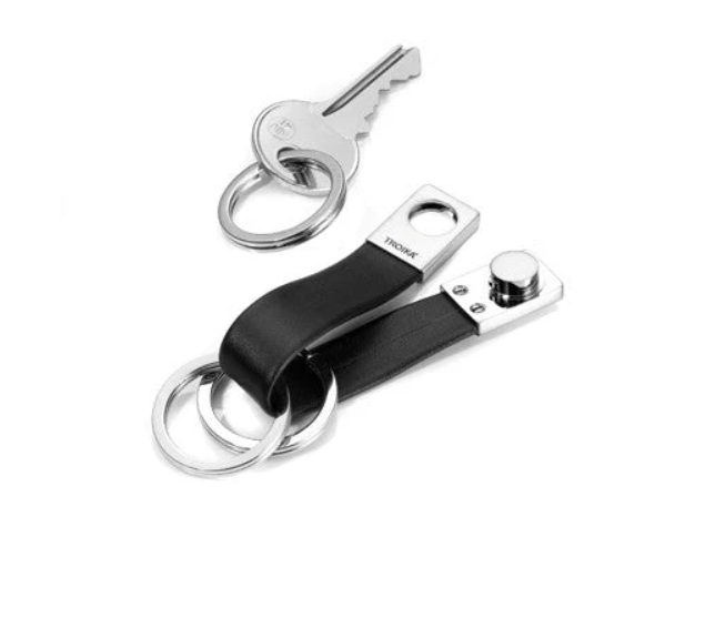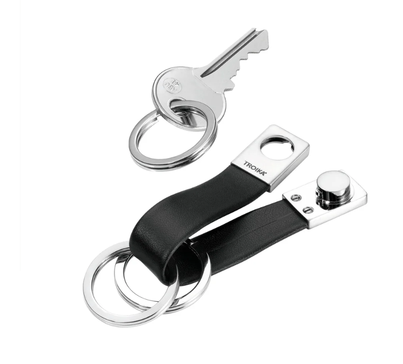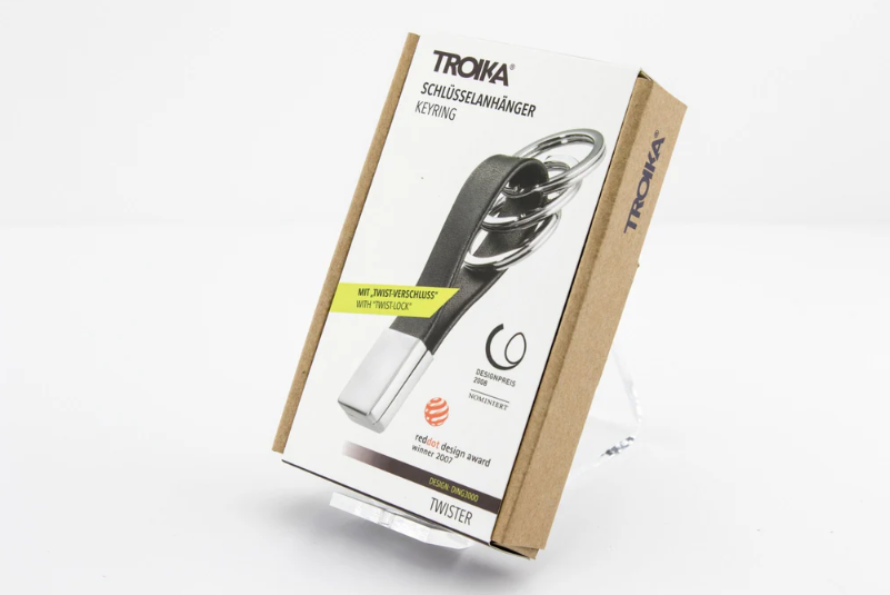 Il portachiavi Twister Valet di Troika, vincitore del Red Dot Award, utilizza un cinturino in pelle per contenere tre anelli divisi. Gli anelli sono facili da rimuovere e condividere grazie a un meccanismo twist and lock all'estremità del cinturino. Un classico del design.