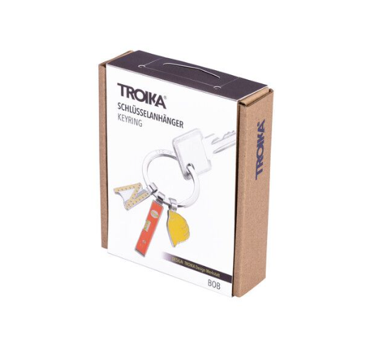 Questo portachiavi è amato da grandi e piccini. Metro, livella, casco: tutto ciò di cui il tuo prossimo progetto ha bisogno. In colori allegri, meravigliosamente resistente al tatto e realizzato in zinco pressofuso smaltato. Della serie TROIKA Construction, design di Anne Rieck.