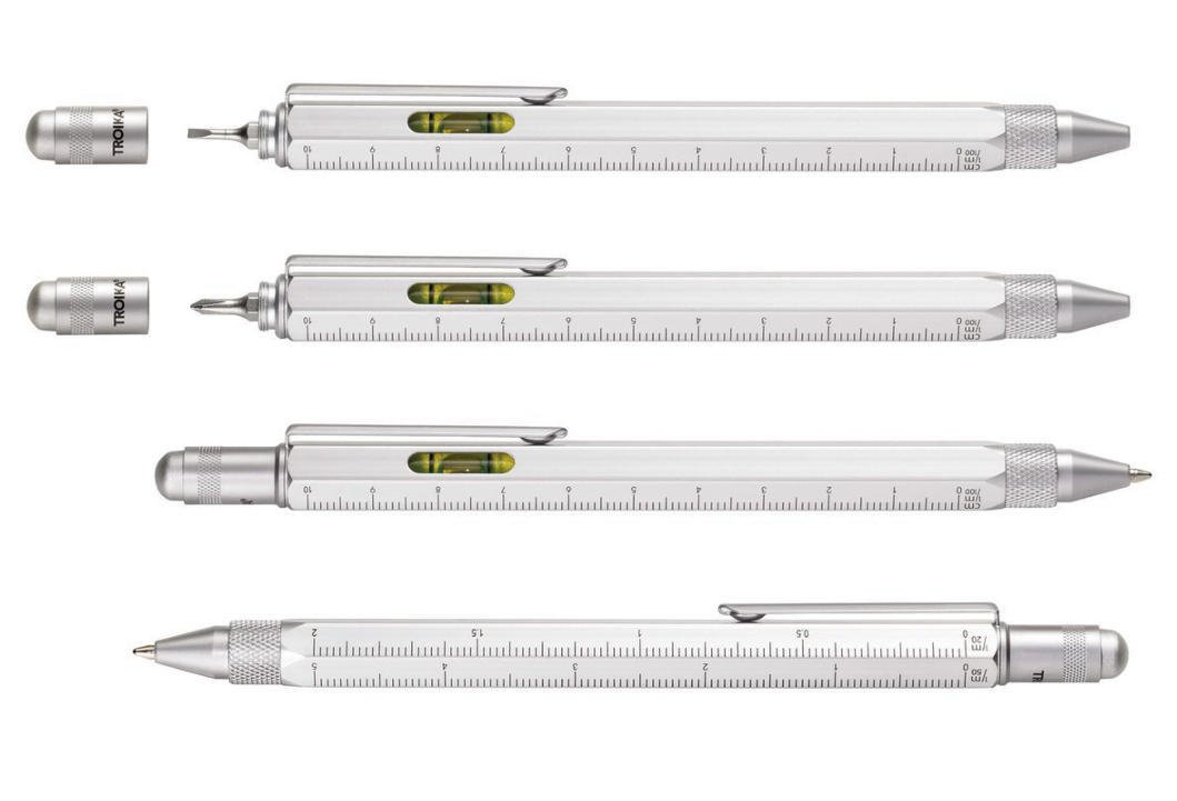Nonostante il suo aspetto elegante, è un vero tuttofare, robusto e pratico, dotato di righello cm/pollici, scala 1:20/1:50, livella a bolla e cacciavite a croce.