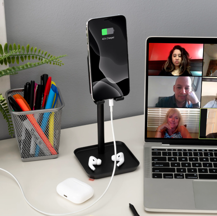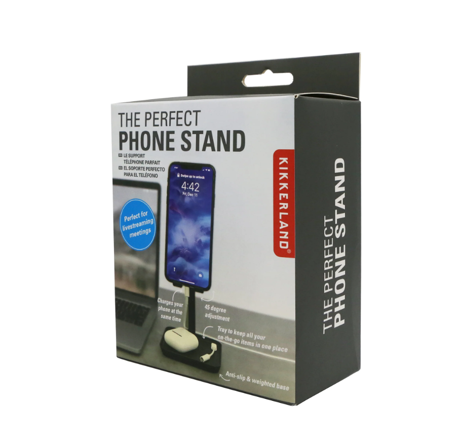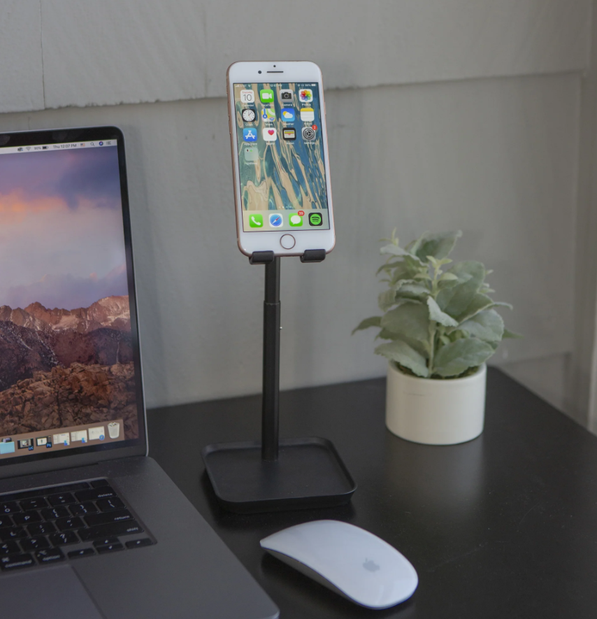 Il design ergonomico self standing rende confortevole e rilassante l'utilizzo di telefoni cellulari e tablet. Altezza regolabile da 7 a 8,6 pollici. Il supporto è regolabile fino a 45°. Fondo antiscivolo.