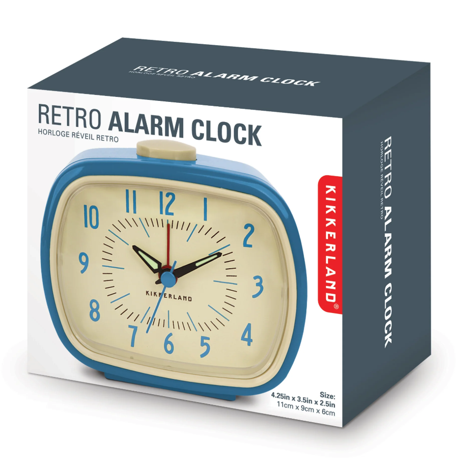 Gli orologi della serie Retro di Kikkerland sono arte funzionale. Questo classico orologio da tavolo ha un quadrante che si illumina al buio e un allarme sonoro. Richiede 1 batteria AA (non inclusa).