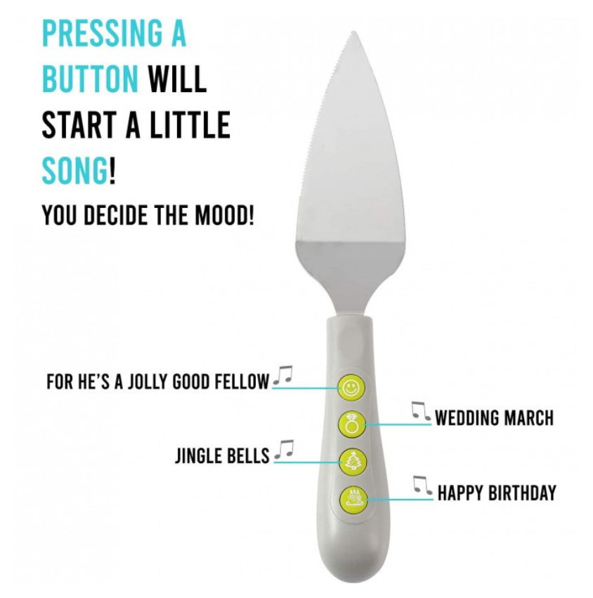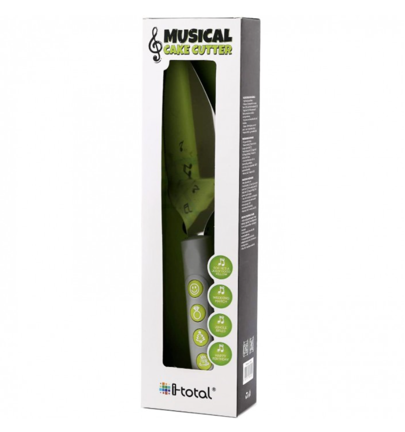 Amanti dei dolci, mettetevi comodi per tagliare le vostre torte preferite con I-TOTAL® - Taglia Torta Musicale. Grazie al bordo seghettato e alle melodie come "La marcia nuziale", "Buon compleanno", Jingle bells" e " Buon compleanno"...