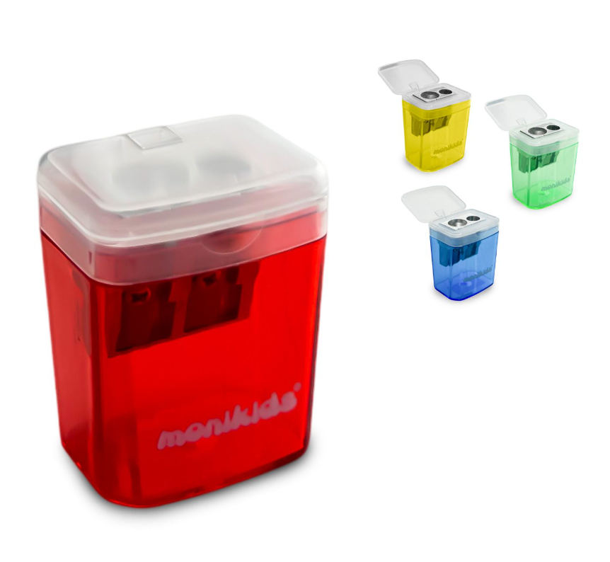 Nik temperamatite con 2 fori dotato di tappo e serbatoio in plastica. Temperamatite in metallo a 2 fori perfetto per la scuola, a casa o a lavoro. Tempera perfettamente le tue matite o i tuoi colori pastello, e grazie al serbatoio non lascerai alcuna traccia di sporco. COLORI ASSORTITI.