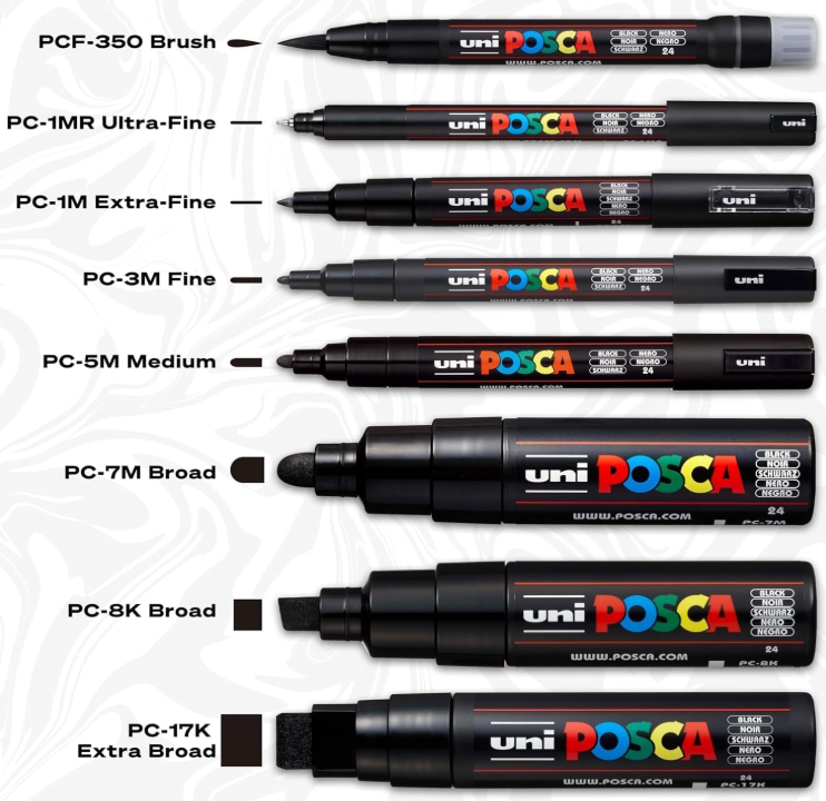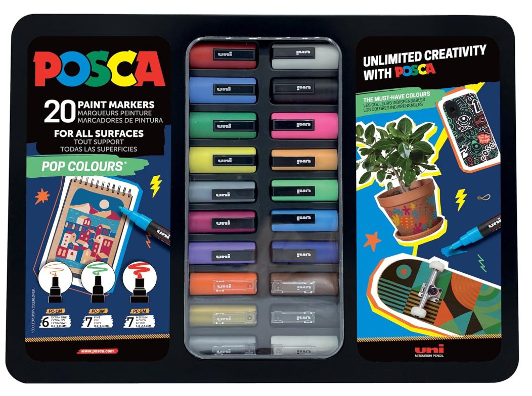 - Set completo POSCA: contiene 20 pennarelli colorati che consentono di progettare facilmente diverse superfici
