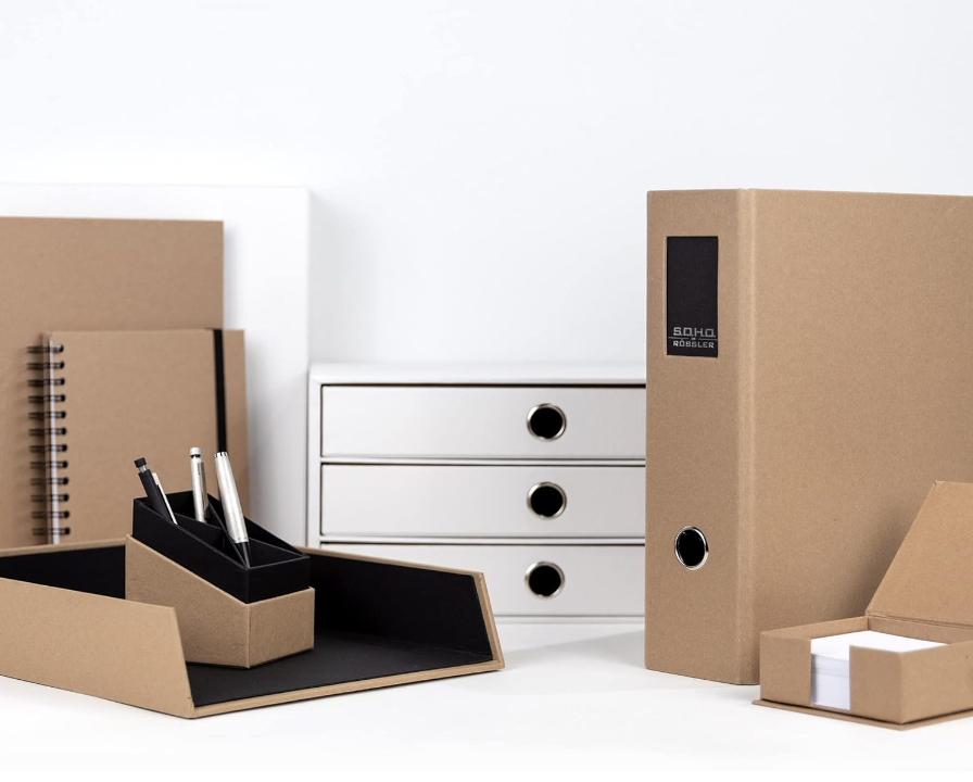 La vaschetta portadocumenti Kraft Avana per documenti A4 è ottimo per la tua scrivania o scaffale. La copertura Avana a coste gli conferisce un design speciale, di alta qualità ed elegante ed una sensazione eccezionale e lo rende anche molto resistente.